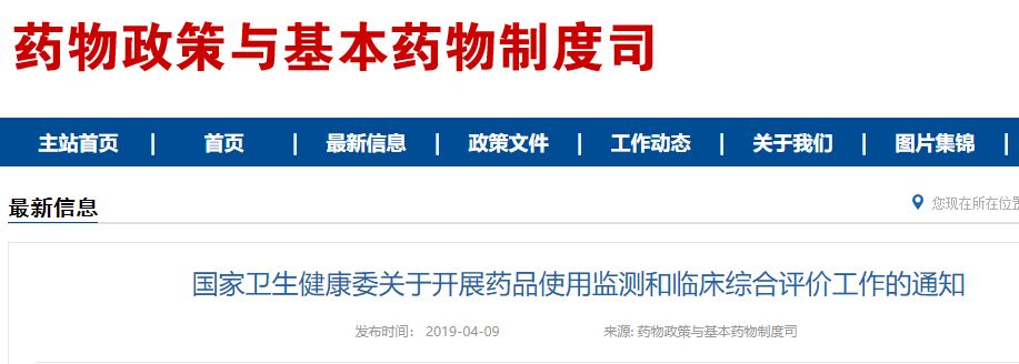 (4月9日),国家卫健委发布通知,将开展药品使用监测和临床综合评价工作的通知。