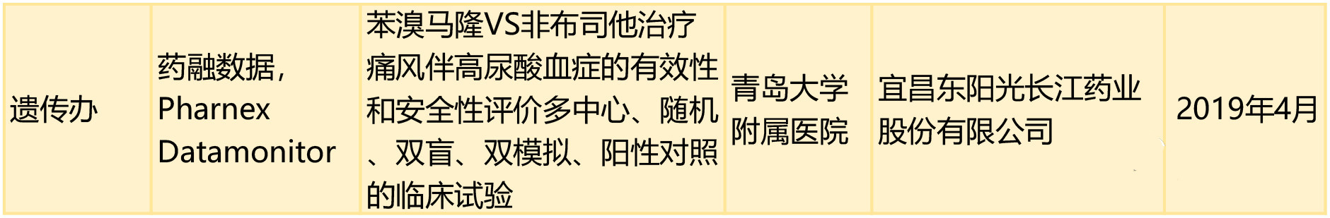2018年度,东阳光药年报披露苯溴马隆销售额为9870万元。近期,东阳光启动了苯溴马隆4期与非布司他头对头临床。此次PK,可能是为了痛风市场销售,学术营销等等。本产品仿制药BE已经在2018年6月完成,登记号CTR20180508,并提交一致性补充申请。早前,登记号为CTR20170317选择参比制剂与药监局披露不同。