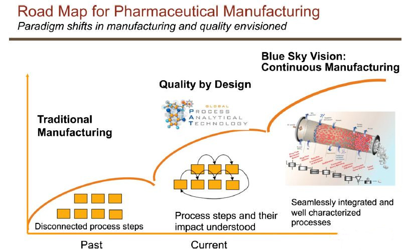 一个连续过程的显著好处是将化学操作和配方集成到一个解决方案中,从而实现一个在一端引入原料,另一端出来产品的恒定的,全自动化的过程。曾经被视为制造业创新的潜在障碍的FDA,目前正在积极推动和支持持续流程。FDA看到了提高药物制造整体质量和可靠性的机会,于2004年开始推动这种变化。事实上,在2015年,FDA批准了第一个包含连续生产过程的新药申请。