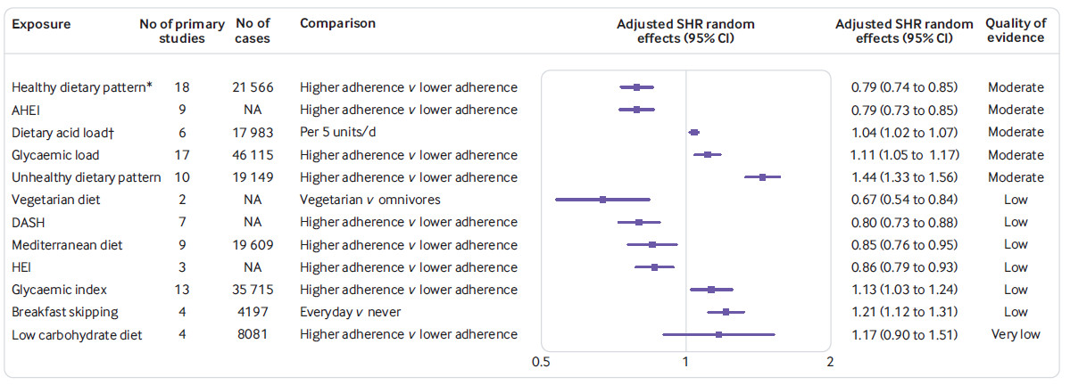 调整后的总体风险比:饮食行为或饮食质量指数与2型糖尿病发病率之间关联的证据质量