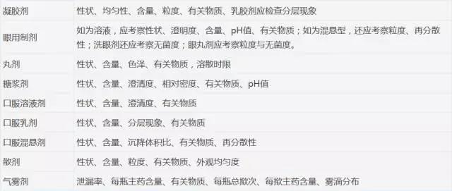 原料药及主要剂型的重点考察项目见附表,表中未列入的考察项目及剂型,可根据剂型及品种的特点制订。