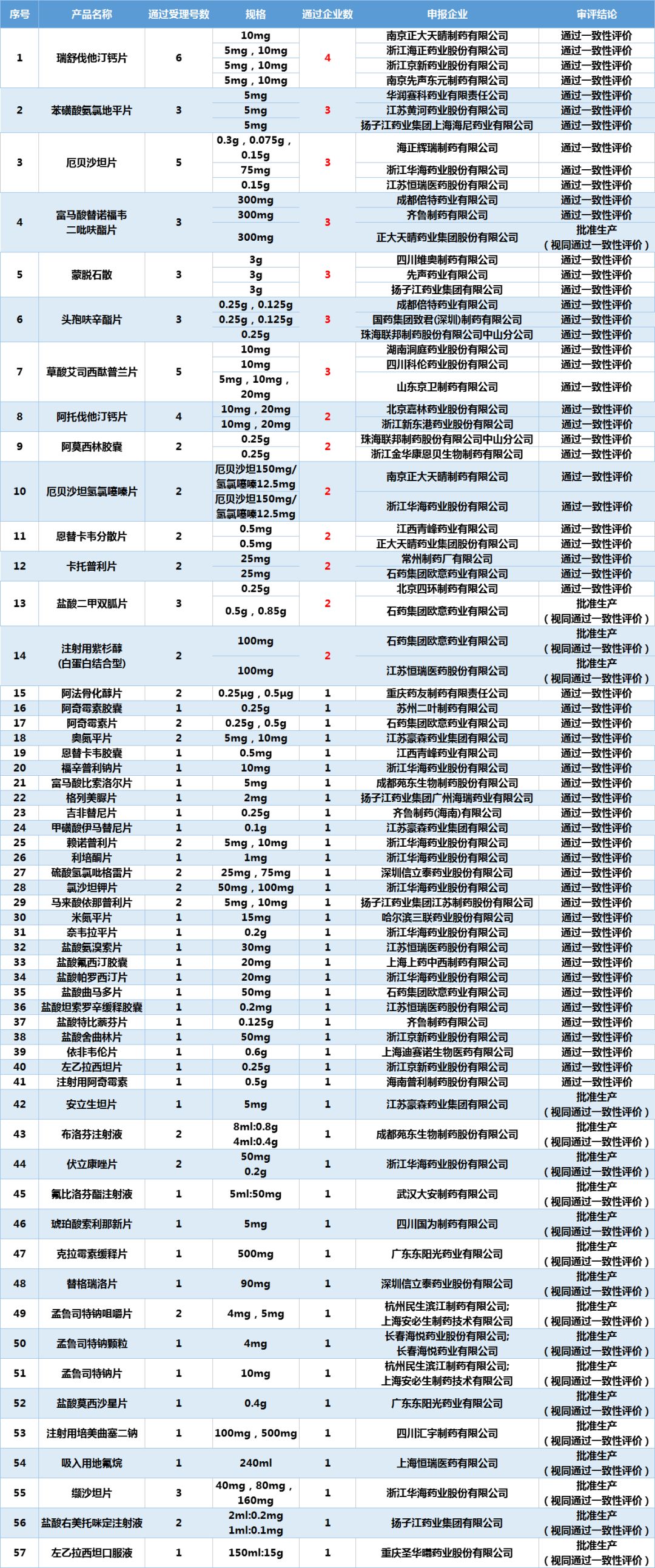 最后还是带各位读者回顾下已过一致性评价的产品。