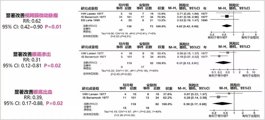 图3. Meta分析:羟苯磺酸钙显著改善DR临床症状