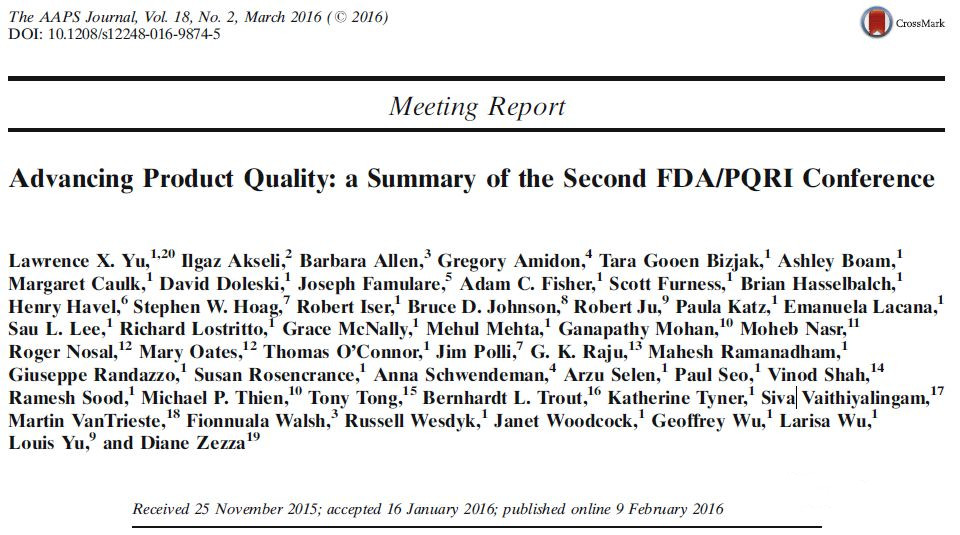 总之,监管机构,行业和学术界已经取得了重大进展,以支持和提高产品质量。随着OPQ的建立,QbD被业界接受,以及连续生产过程中的技术进步,这个阶段将为美国公众提供质量前所未有的药物。如果质量得到提升,设计和建设得当,这将是一项真正有益的努力,有可能有益于行业和患者。