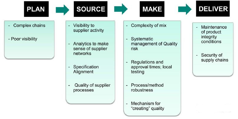 “计划”阶段包括平衡总需求和供应的过程,以制定最能满足采购,生产和交付要求的行动方案。这个阶段对于满足目标患者群体的需求至关重要。尽管质量的综合性质,制药行业可能需要按行业细分来设计解决方案。例如,“一刀切”模式可能会增加某些行业细分供应中断的风险。流程需要合作预测需求,并转向基于真实需求而不是预测的包含补货的模型。不幸的是,与其他制造业相比,制药行业在整个计划阶段的综合需求普遍较差。