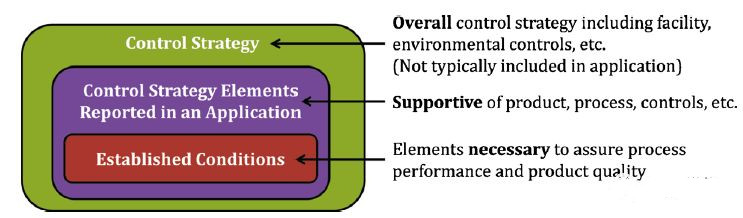 2014年,在明尼阿波利斯召开的ICH质量战略研讨会上,研讨会参与者反映了自ICHQ8-Q11发布以来的进展。他们提出了一项为期5年的战略计划,包括制定药品生命周期管理的愿景和战略。在ICH2014研讨会上,ICH指导委员会赞同关于建立专家工作组(EWG)以制定新指南“药品生命周期管理的技术和法规考虑 - ICHQ12”的建议。ICH Q12是行业的优先考虑事项,并且旨在将更多的关注点放在生命周期的商业制造阶段,同时弥补上述指南中已经涵盖的开发阶段。如概念文件所述,ICH Q12是ICH“Q”准则的独特之处,因为它旨在解决管理产品生命周期中的技术挑战,同时也面临监管挑战。这些监管挑战包括一些复杂的监管流程,并非总是以科学和风险为基础。这些挑战包括明确监管承诺或既定条件的构成及其与控制的关系(如图3所示),作为生命周期管理推动者的变革和知识管理的最佳实践,以及探索协调全球数据需求以支持批准后变更的机会。
