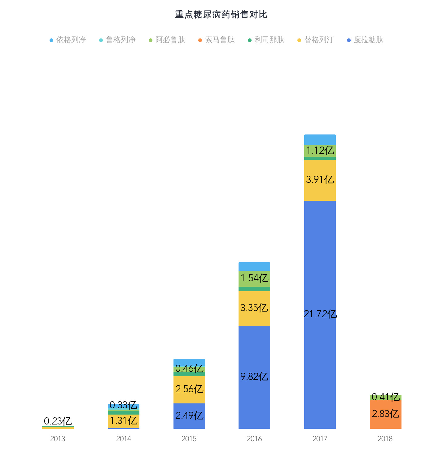 3、为了简化对比,所有和二甲双胍组成的复方制剂,都合并为单方制剂计算;