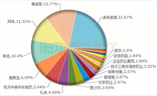 图3:2018年重点省市公立医院终端糖尿病化药厂家格局