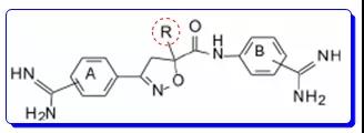 起初,多家公司报道了针对FXa的双芳香脒类抗血栓化合物,杜邦公司通过筛选IIb/IIIa受体拮抗剂(该公司曾深入研究)对FXa的活性,发现以下化合物对FXa的Ki值为38.5 μmol·L?1,但结构为单芳脒化合物。