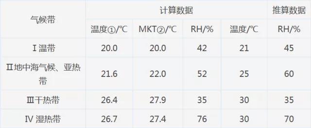 长期试验采用的温度25℃±2℃、相对湿度为60%±10%,是根据国际气候带制定的,国际气候带见下表。