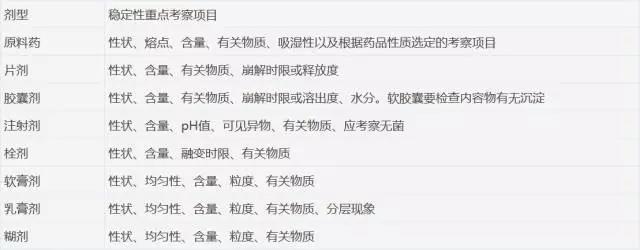附表   原料药及药物制剂稳定性重点考察项目表