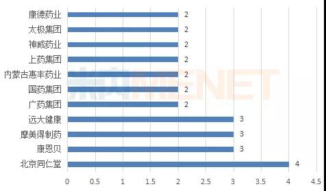 新增的88个独家中成药共涉及73家药企(以集团计),其中新增独家中成药品种数达2个及2个以上的企业有11家,北京同仁堂以4个品种数遥遥领先,远大健康、摩美得制药、康恩贝均以3个品种紧接其后。