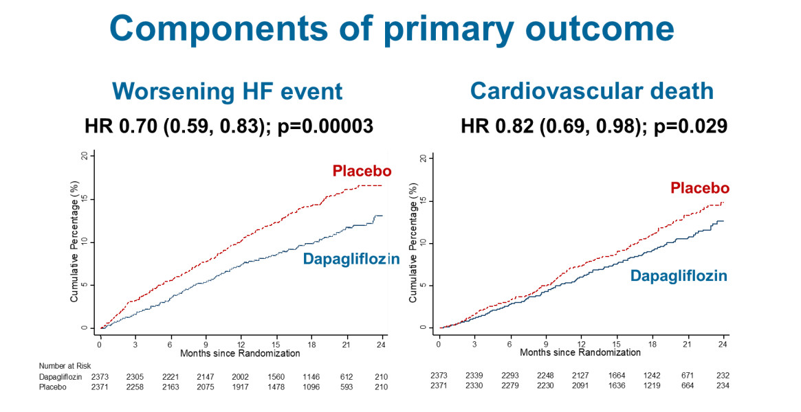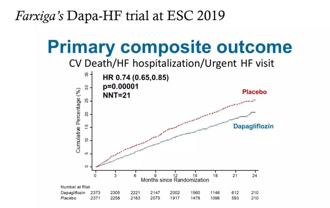 FDA此项授予主要依据III期DAPA-HF研究和DELIVER研究的结果,这两项研究分别考察了达格列净对HFrEF患者和HFpEF患者的疗效。8月20日,阿斯利康曾宣布DAPA-HF研究到达主要终点,达格列净成为首个被证实可以降低非2型糖尿病患者心血管死亡和心衰恶化风险的SGLT-2抑制剂。详细数据在9月初的ESC2019大会上公布,达格列净在标准治疗基础上能显著降低心血管(CV)死亡或心力衰竭恶化的主要复合终点发生风险26%。另外,达格列净组心力衰竭首次恶化的发生风险下降30%,因心血管疾病导致的死亡风险下降18%。