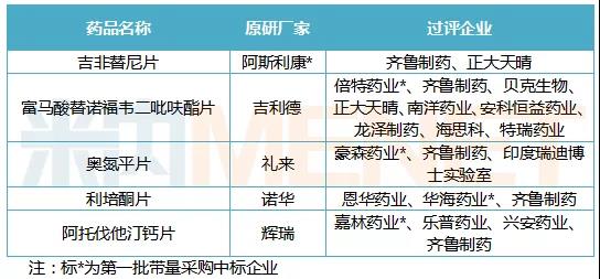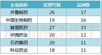 通过或视同通过一致性评价品种TOP6企业